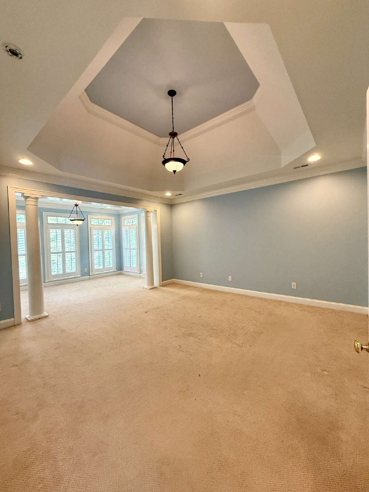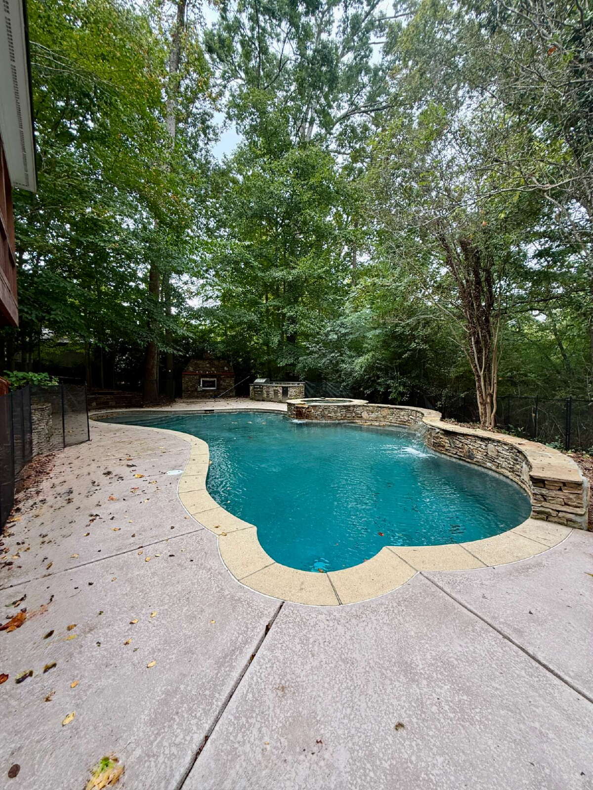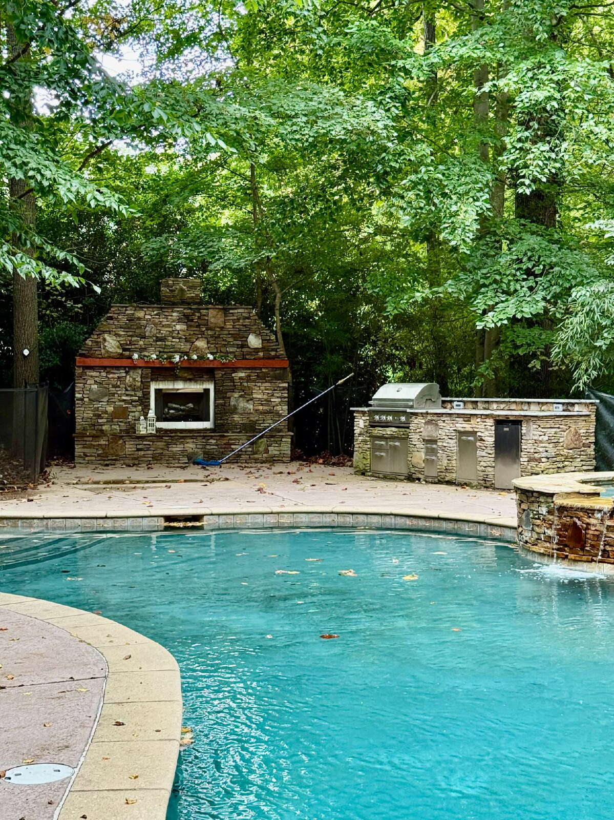 Full-Brick, Elegant 2 Story Home w/ Full Walk Out Basement on a quiet cul-de-sac in Asbury Hall located right off of Selwyn Avenue. Inviting front porch welcomes you into this classic Myers Park home. Impressive 2 story foyer flanked by a beautiful staircase leads to a very spacious dining room and a private office with French doors. Massive, open great room w/fireplace & built-ins adjoins recently renovated kitchen, breakfast area and bright sunroom. Rear door leads to deck and massive screened porch overlooking the in-ground pool, hot tub, waterfall features, outdoor kitchen and private, wooded rear yard. Separate sitting area & breakfast nook overlook a large, newly stained deck. Laundry room on the mail level with sink and washer/dryer. Beautiful mouldings, refinished hardwoods and 3.5" wood shutters. Upstairs is the very impressive, oversized primary suite w trey ceiling and lovely sunroom flanked by columns plus an elegant ensuite bathroom double sided walk in closet, jetted tub and tiled shower. Three additional spacious bedrooms, two full baths and tons of storage area completes the upstairs. There is a Massive walk-out basement with fireplace, full bath, a custom built in bar and a wall of windows. Pool Care Included in the rent. This Highly sought-after location is just minutes to shops/dining at Park Road Shopping Center and Southpark, minutes to the Greenway and to Selwyn boutiques and pubs. Close to uptown and easy access to the airport. Side yard features log cabin playhouse (as-is)