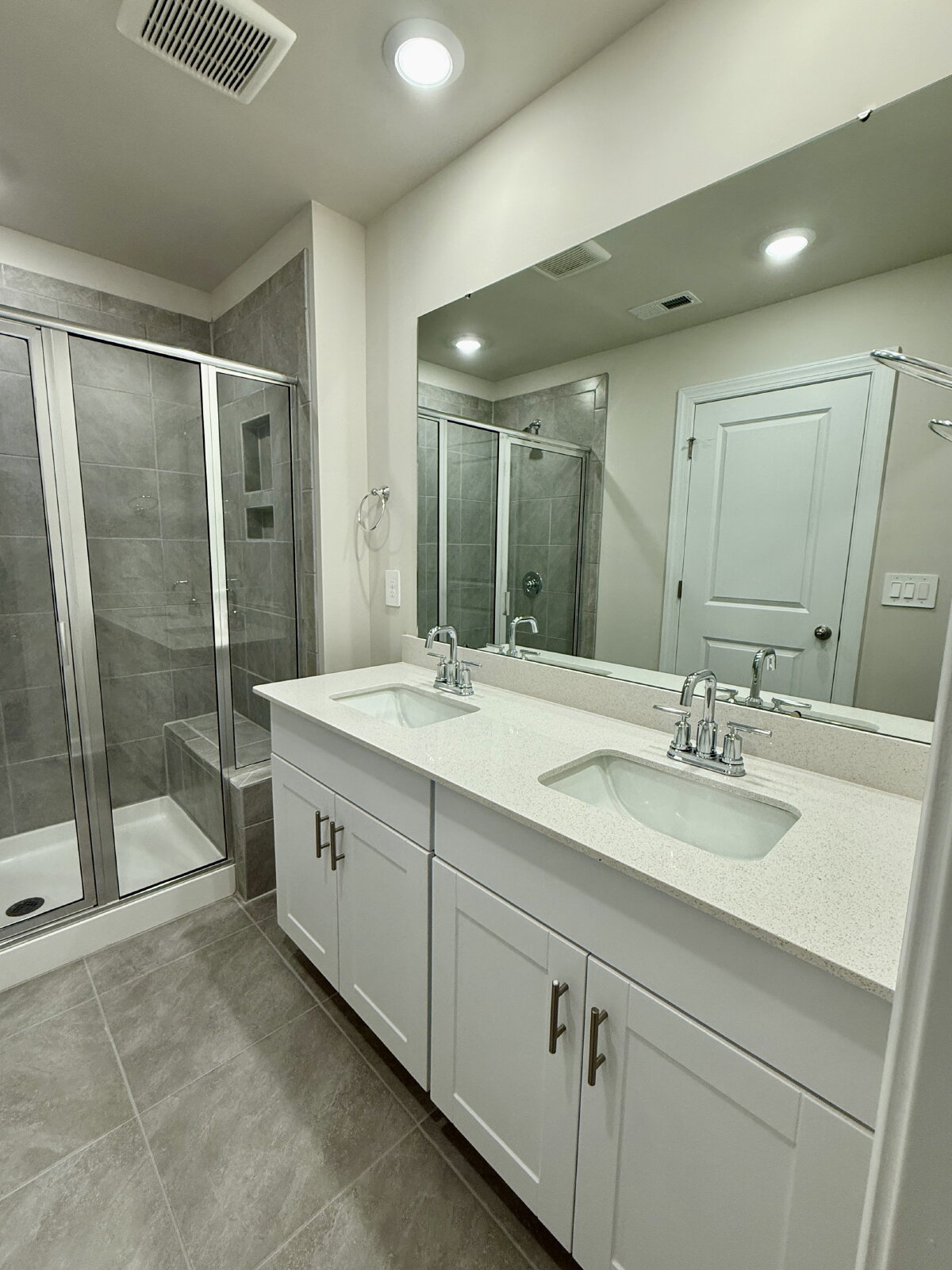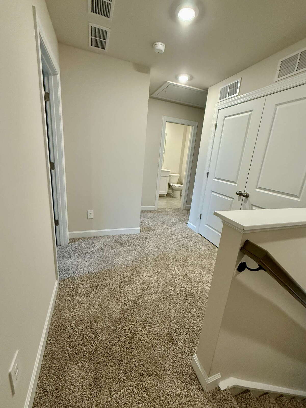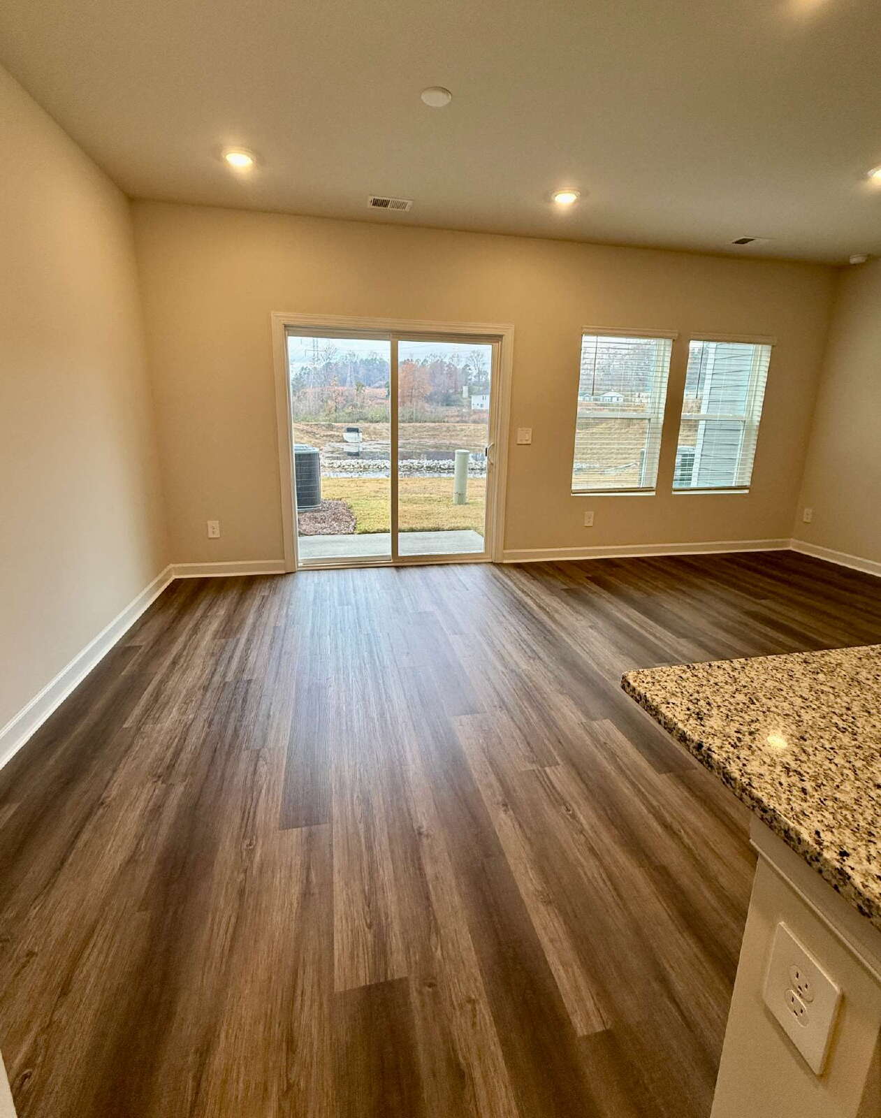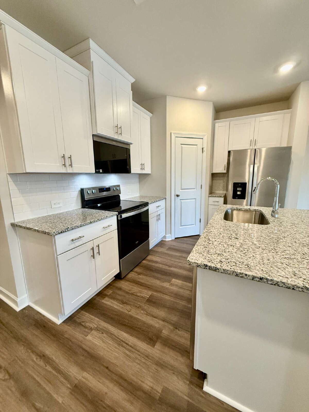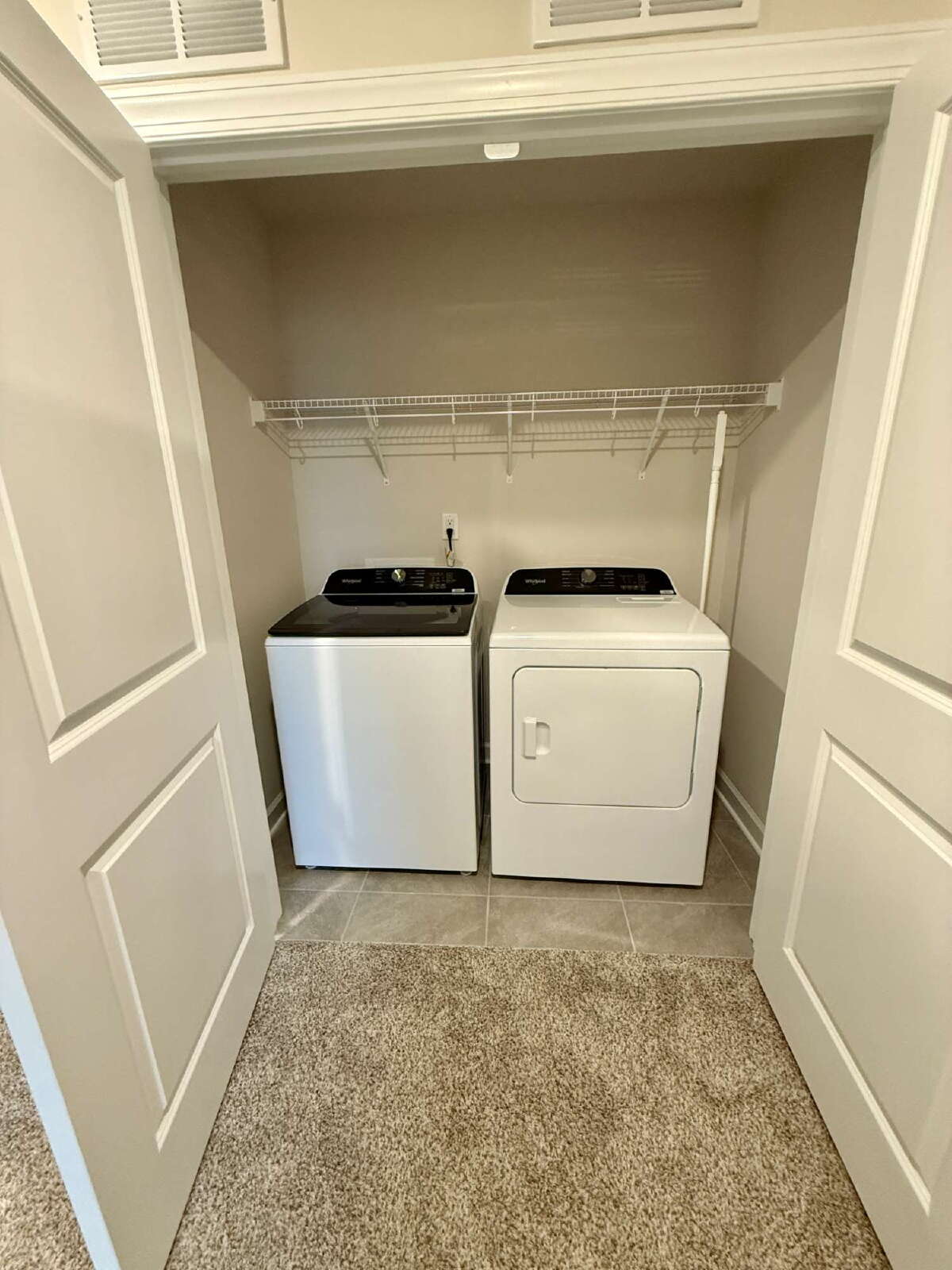Beautiful 3BR 2.1 BA townhome in Concord's Childers Park Townes which boasts upgraded, high quality features throughout. Step inside to discover 9' ceilings, raised two-panel doors, and stylish vinyl flooring throughout. The kitchen offers quartz countertops, tile backsplash, recessed Timberlake cabinets, stainless steel appliances, and a spacious pantry. Light, bright dining area off the kitchen with a sliding door to the rear patio. The upper level features the luxurious primary suite includes dual vanities, quartz countertops, tile flooring and a large walk-in shower. Nice sized secondary bedrooms are up with a secondary full bath. Laundry closet off the hall w/ washer/dryer included. One car garage. The exterior features Bermuda grass sod landscaping and low-maintenance vinyl siding. Energy Efficient home & Smart Home with smart thermostat, door sensors, and a video doorbell. No Smoking. Small pet conditional. $75 Application Fee per person over 18. (no refunds)